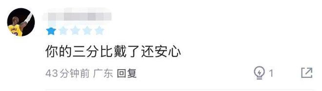 在新赛季揭幕战,同曦加时以102-107惜败广东的比赛中,祝铭震虽然拿到板凳席上最高的14分,但16次出手仅命中5球,三分球10中2,但凡他能够多进2个空位三分,郭昊文都不至于孤掌难鸣,空砍生涯新高的42分外带6篮板8助攻。有球迷嘲讽祝铭震:你的三分比戴了还安心。